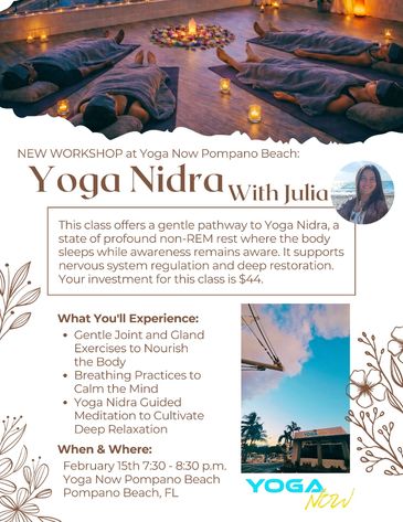 This one-hour class offers a gentle pathway into deep rest and awareness. We’ll begin with slow, joint-nourishing movements and simple breathwork to release held tension and calm the nervous system. From there, you’ll be guided into Yoga Nidra—a state of profound non-REM rest where the body sleeps while awareness remains present. Yoga Nidra is often described as a bridge between meditation and sleep, offering restorative benefits without physical effort. Students remain comfortably at rest throughout the practice, allowing restoration to occur at both the physiological and psychological levels.